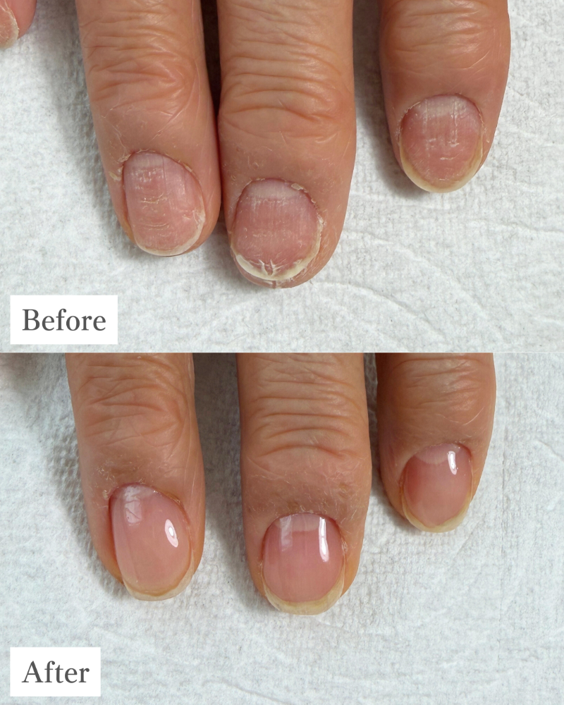 自爪育成を始める前はお爪の割れや欠け、凸凹や手荒れなど、様々なお悩みを抱えていたお客様。