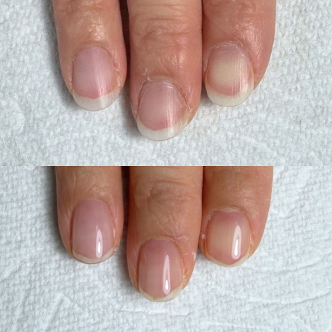 丁寧な説明と施術、落ち着ける空間で安心して通うことができました。マット風の仕上がりにしてもらい、ネイルNGの職場ですが誰にも気づかれることなく、続けることができました。ピンクの部分も目に見えて変化があり、施術後にネイルオイルを毎度追加でいただけて、香りに癒されながら、爪を見る度に気分が上がります。before と afterの写真、動画まで下さりその変化を見るのも嬉しいです!