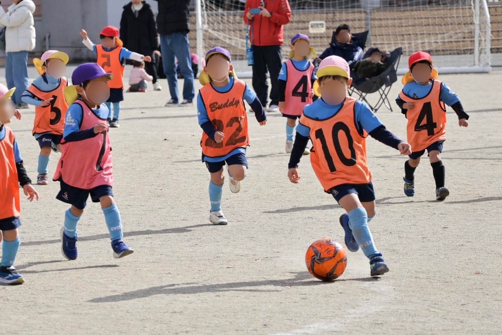 年中さんのサッカーの試合ってどんな感じなんだろう〜って思いながら観戦していたのですが、みんな一生懸命ボールを追いかけて