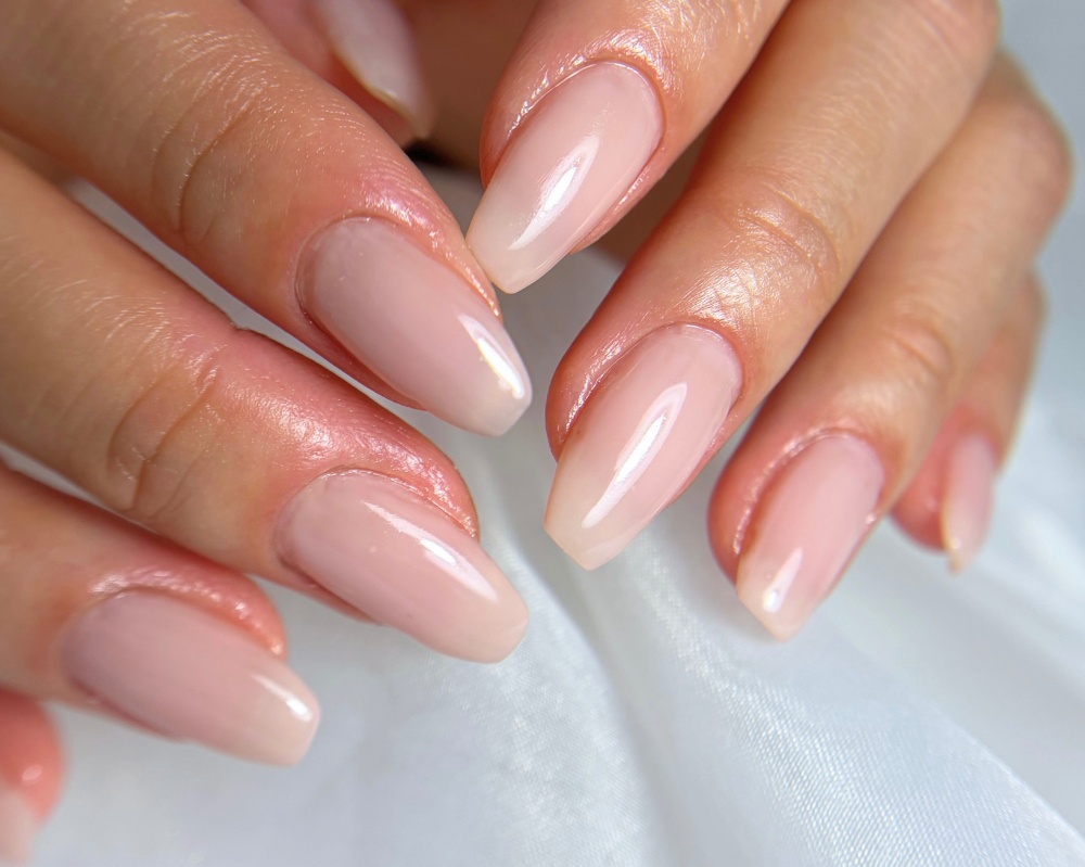 お爪の根元から先端まで、10本同じ色でお仕上げいたします